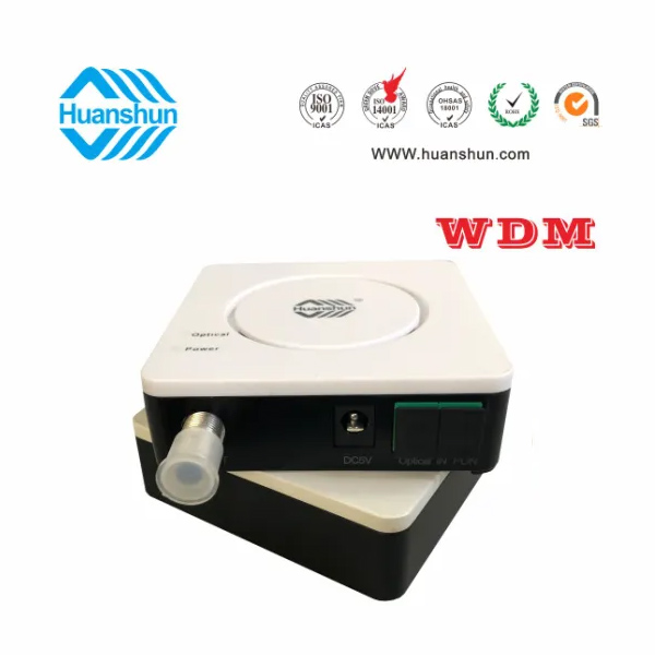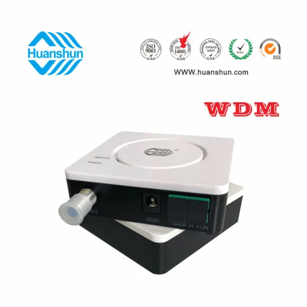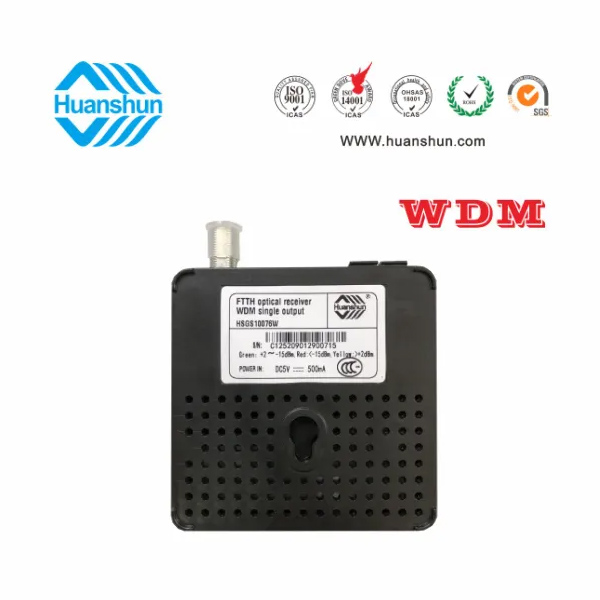 WDM型单输出FTTH光接收机 | HSGS10076W | CATV 1540~1565nm接收,-5~-15dBm/RF 76dBuv恒流输出,PON:1490/1310nm;外接90~255V 5V 0.5A电源适配器 |