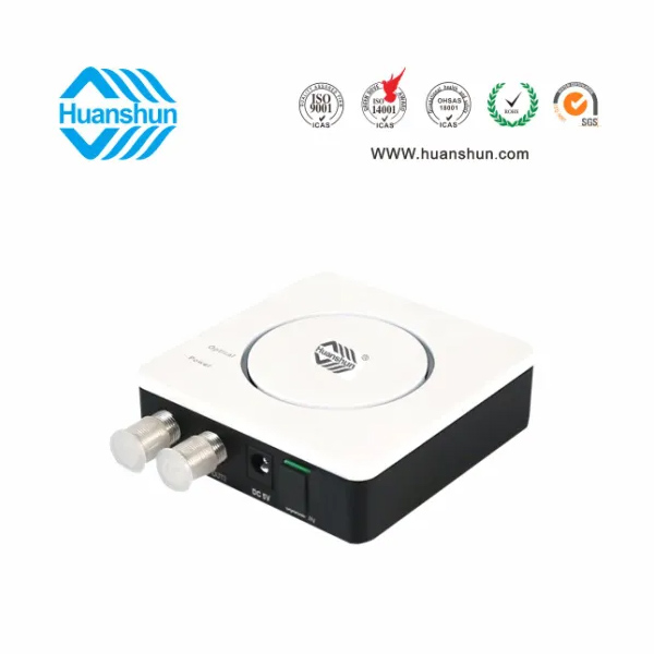 环顺的HSGS10076D/2光接收机是专为CATV网络的FTTH 应用而设计的入户型光接收机。具有结构小巧紧凑、式样美观、 应用方便等 特点,在高达1000Mhz的带宽下能够提供稳定的输出电平和优异的性能指标,具有极宽的光功率工作范围。
