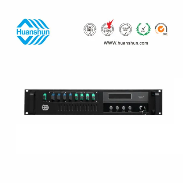 随着广电全光网传输光纤到户方案(FTTH)的实施,当EDFA在CATV系统中用作级联放大时,系统C/N会严重劣化,因此要求EDFA具有高的饱和输出功率、低的失真,而铒镱共掺(EYDFA)双包层大功率光纤放大器满足这一需求,以适应当前FTTH和FTTB网络的需求。FTTH除传输1550nm CATV光信号的同时,还需E/GPON DATA光信号传输,合波型大功率光纤放大器是在EYDFA的基础上结合FWDM器件,有机地把1550波段CATV光信号与1310/1490nm PON DATA光信号进行合波传输。