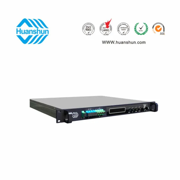 大功率光纤放大器EYDFA | YGF1504-16C | 19 " 1U标准机箱,-5 ~ +10 d Bm输入,4路标称规格(16、17、18、19、20、21dBm)放大输出,并支持下调-2dB,安全连接模式,NF ≤ 5dB(0dBm时);内置FWDM合波器,插播损耗 ≤ 1dB;双模块热插拨电源,AC90 ~ 255V或DC-48V供电,RJ45标准网管(支持SNMP、WEB) |