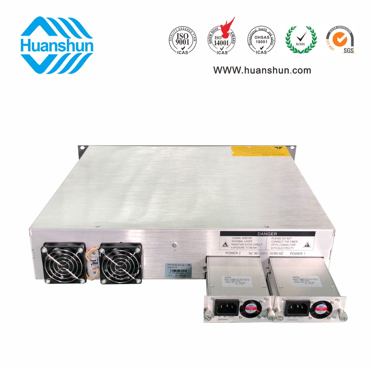 YGF1532-XXC室内型结构采用全铝材机箱,表面氧化拉丝工艺;JDSU等世界著名半导体公司出品的多模大功率泵浦激光器作为泵浦源,美国OFS合束器作为双包层合成器。机器内设光功率输出稳定电路及激光器热电致冷器能稳定工作。微处理器软件对激光器的工作状态进行监控,工作参数由数字面板(LCD)显示。一旦激光器的工作参数偏离软件设定的允许范围,微处理将自动关断激光器电源,红灯闪烁提示告警,数字面板提示故障原因。