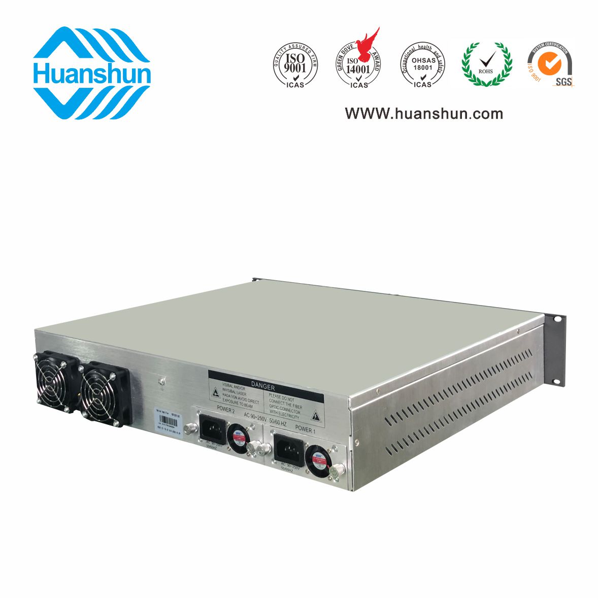 大功率光纤放大器EYDFA | YGF1532-16C | 19 " 2U/3U标准机箱,-5 ~ +10 d Bm输入,32路标称规格(16、17、18、19、20、21、22、23dBm)放大输出,并支持下调-2dB,安全连接模式,NF ≤ 5dB(0dBm时);内置FWDM合波器,插播损耗 ≤ 1dB;双模块热插拨电源,AC90 ~ 255V或DC-48V供电,RJ45标准网管(支持SNMP、WEB) |
