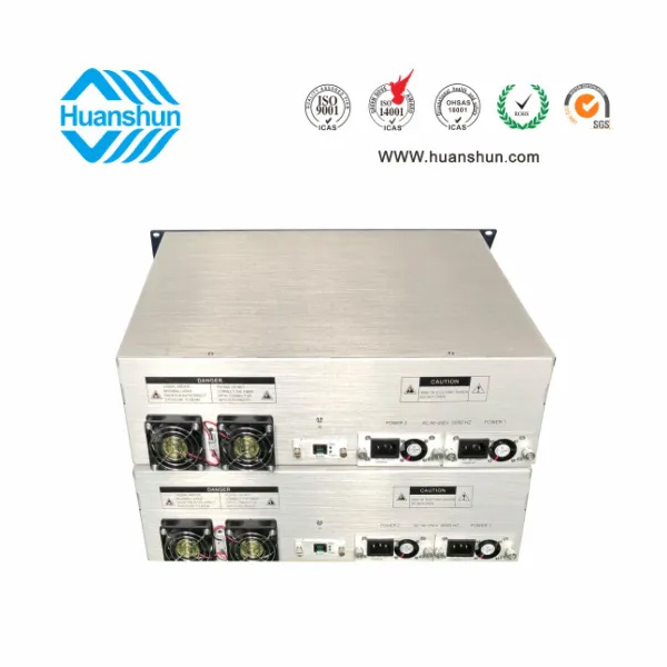 YGF1532-XX室内型结构采用全铝材机箱,表面氧化拉丝工艺;JDSU等世界著名半导体公司出品的多模大功率泵浦激光器作为泵浦源,美国OFS合束器作为双包层合成器。机器内设光功率输出稳定电路及激光器热电致冷器能稳定工作。微处理器软件对激光器的工作状态进行监控,工作参数由数字面板(LCD)显示。一旦激光器的工作参数偏离软件设定的允许范围,微处理将自动关断激光器电源,红灯闪烁提示告警,数字面板提示故障原因。