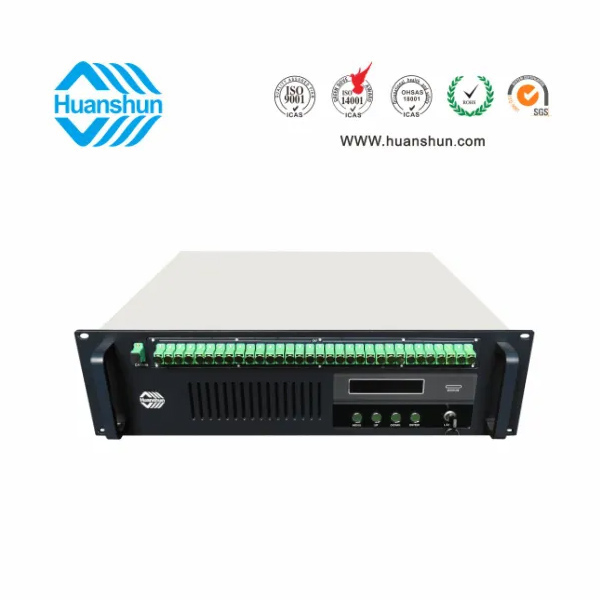 大功率光纤放大器 | YGF1532-16 | 19 " 2U/3U标准机箱,-5 ~ +10 d Bm输入,32路标称规格(16、17、18、19、20、21、22、23、24dBm)放大输出,并支持下调-2dB,安全连接模式,NF ≤ 5dB(0dBm时);内置FWDM合波器,插播损耗 ≤ 1dB;双模块热插拨电源,AC90 ~ 255V或DC-48V供电,RJ45标准网管(支持SNMP、WEB) |