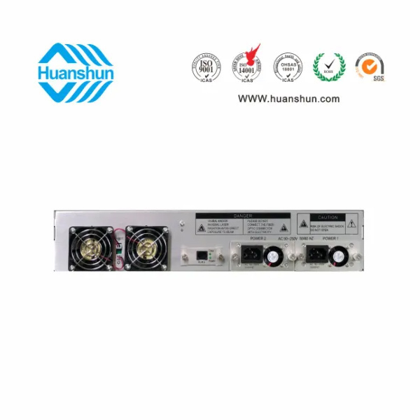 大功率光纤放大器 | YGF1516-16 | 19 " 2U/3U标准机箱,-5 ~ +10 d Bm输入,16路标称规格(16、17、18、19、20、21、22、23、24dBm)放大输出,并支持下调-2dB,安全连接模式,NF ≤ 5dB(0dBm时);内置FWDM合波器,插播损耗 ≤ 1dB;双模块热插拨电源,AC90 ~ 255V或DC-48V供电,RJ45标准网管(支持SNMP、WEB) |