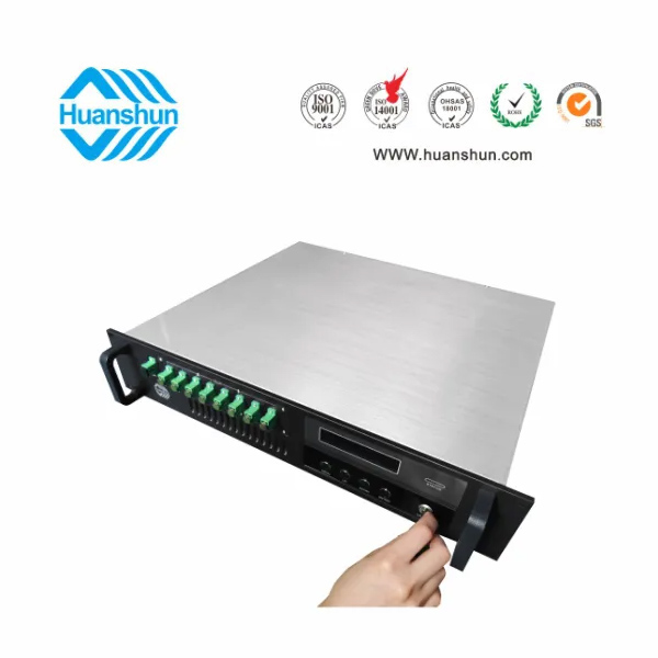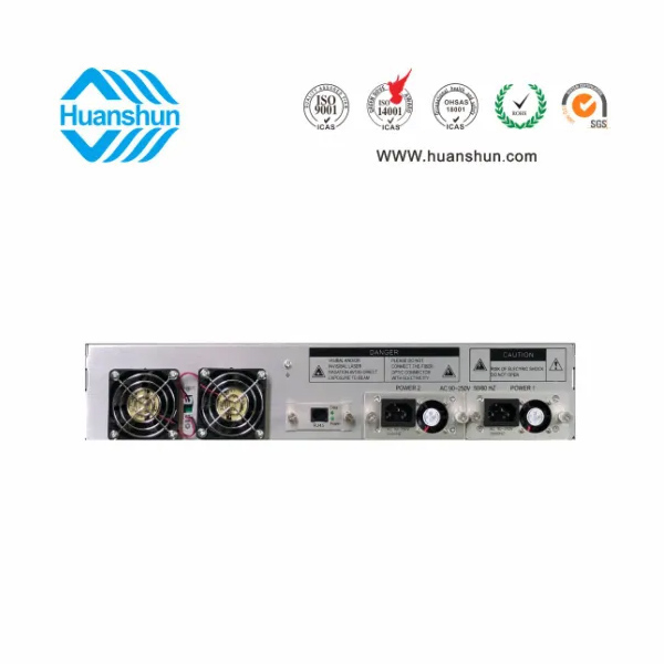 大功率光纤放大器 | YGF1508-16 | 19 " 2U/3U标准机箱,-5 ~ +10 d Bm输入,8路标称规格(16、17、18、19、20、21、22、23、24dBm)放大输出,并支持下调-2dB,安全连接模式,NF ≤ 5dB(0dBm时);内置FWDM合波器,插播损耗 ≤ 1dB;双模块热插拨电源,AC90 ~ 255V或DC-48V供电,RJ45标准网管(支持SNMP、WEB) |