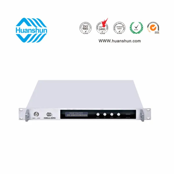 YGF1522T | -3 ~ +10 d Bm输入,标称规格(22、23、24)功率放大输出,并支持上调+0.5dB,下调-3dB,NF ≤ 5dB(0dBm时);1U标准机箱,双模块热插拨电源,AC90 ~ 255V或DC-48V供电,RJ45标准网管(支持SNMP、WEB) | |